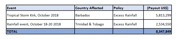 Total payouts made by CCRIF for the policy year 2018/19: over US$8 million